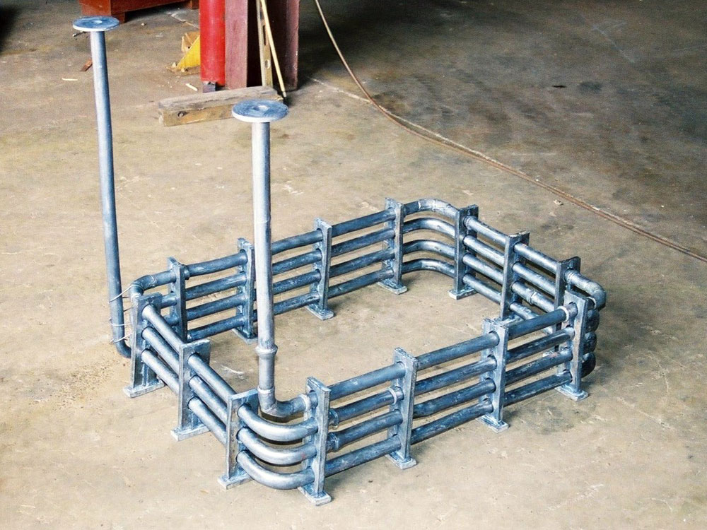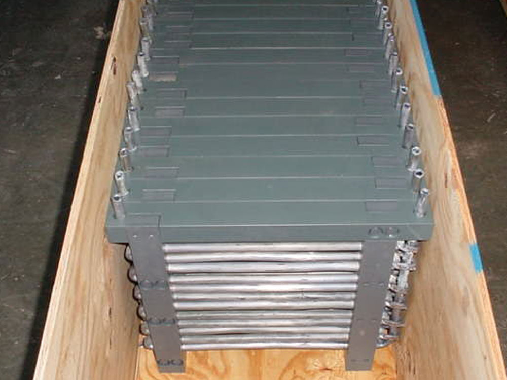 Heating and Cooling Coils are made from extruded lead pipes with solid lead or homogeneously bonded lead supports for anodizing, electroplating, and other specialty applications. There are numerous configurations and designs to consider, each factor dependent upon the application or processes. These designs include but are not limited to: Battery Acid Cell Heat Exchangers, Collapsed Bend, Dished Spiral, Double Helical, Flat Spiral, Gel Acid Mixing, Helical Spiral, and Return Bend.